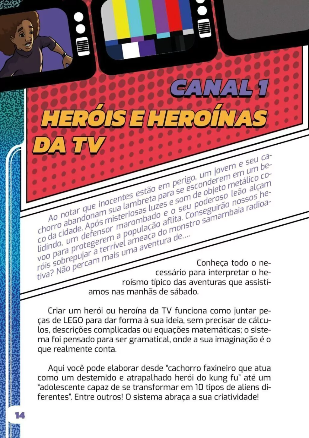 Você acabou de sintonizar a antena da sua televisão para a primeira transmissão de SUPER TV SHOW, o RPG que te levará de volta ao tempo em que sua imaginação cabia dentro de um tubo de imagem.